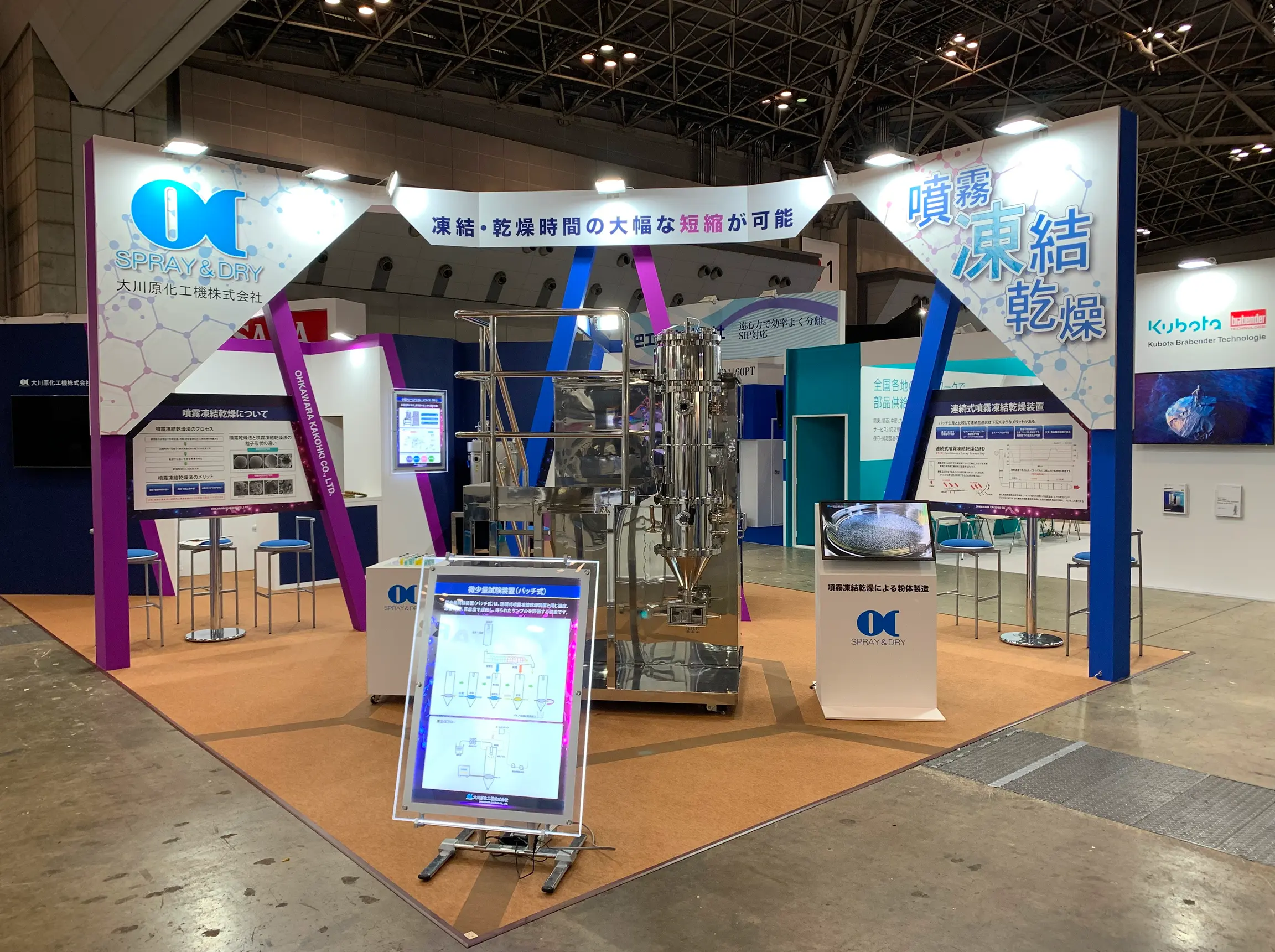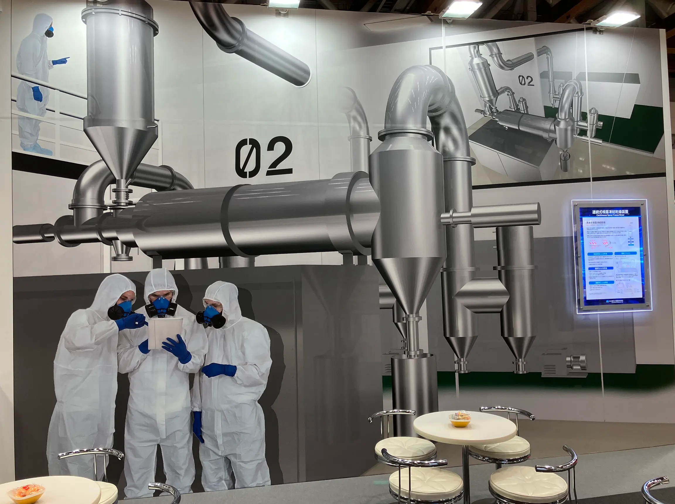 弊社クローズドシステムを搭載したスプレードライヤで対応可能です。展示会では実機をご覧いただけます。